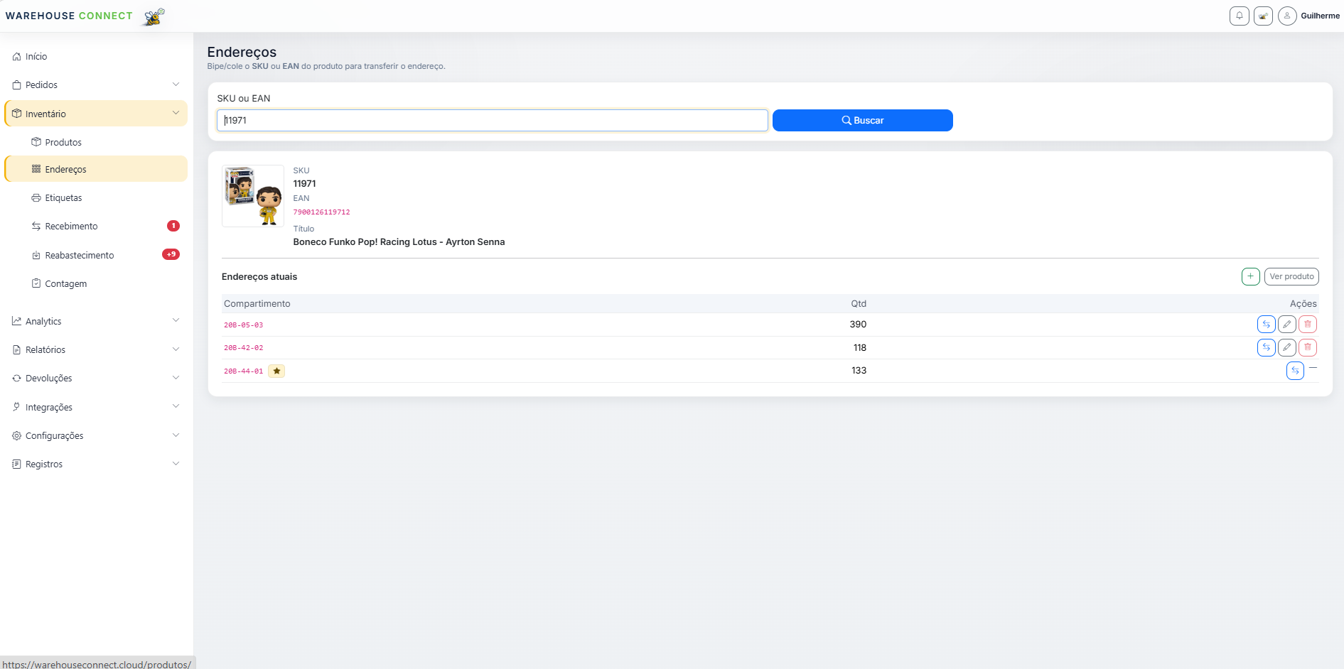 - Endereços visíveis por SKU para apoiar transferências e correções com mais segurança.