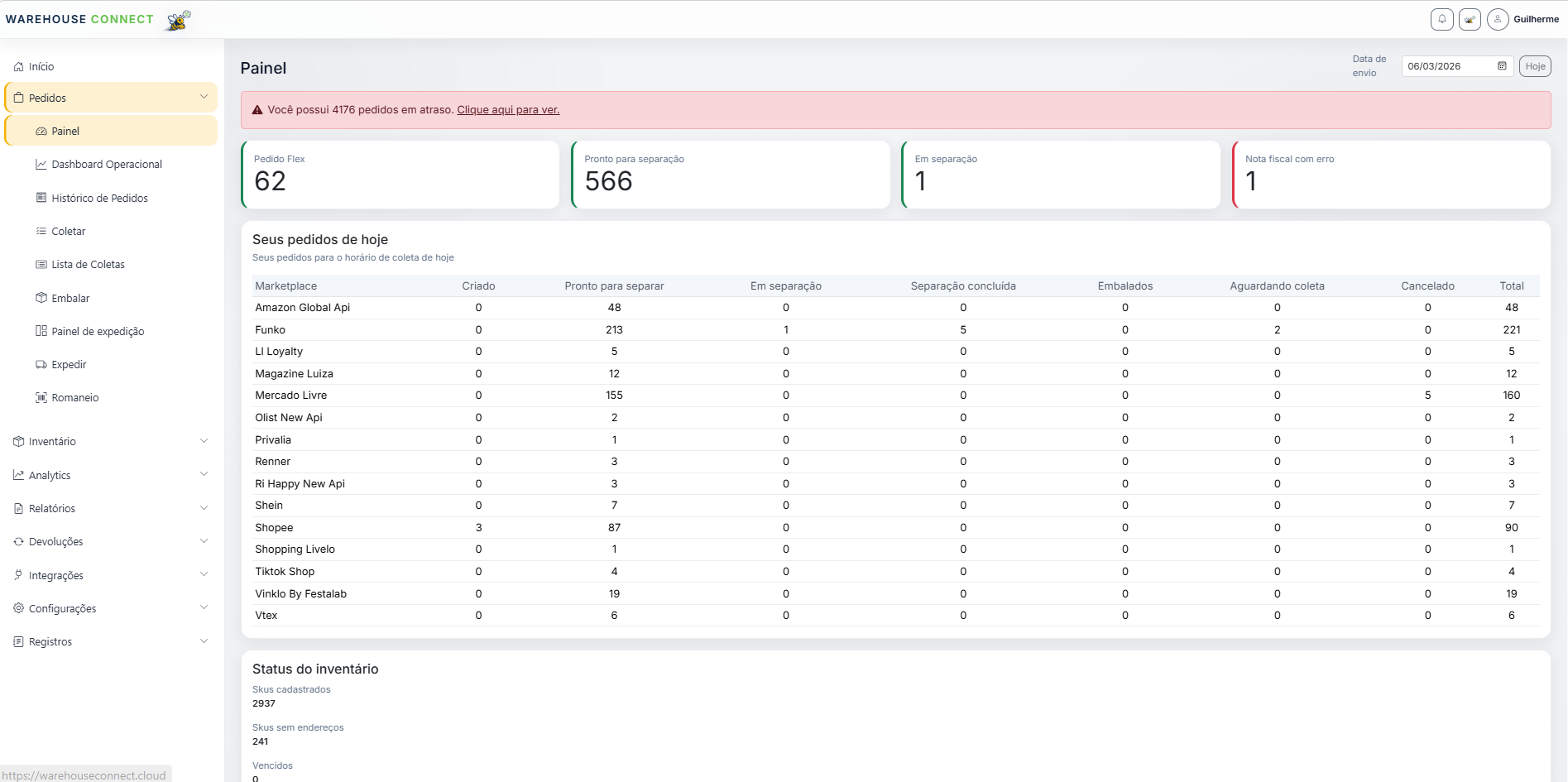 Warehouse Connect reúne operação, inventário, integrações e inteligência dentro da mesma arquitetura de uso.